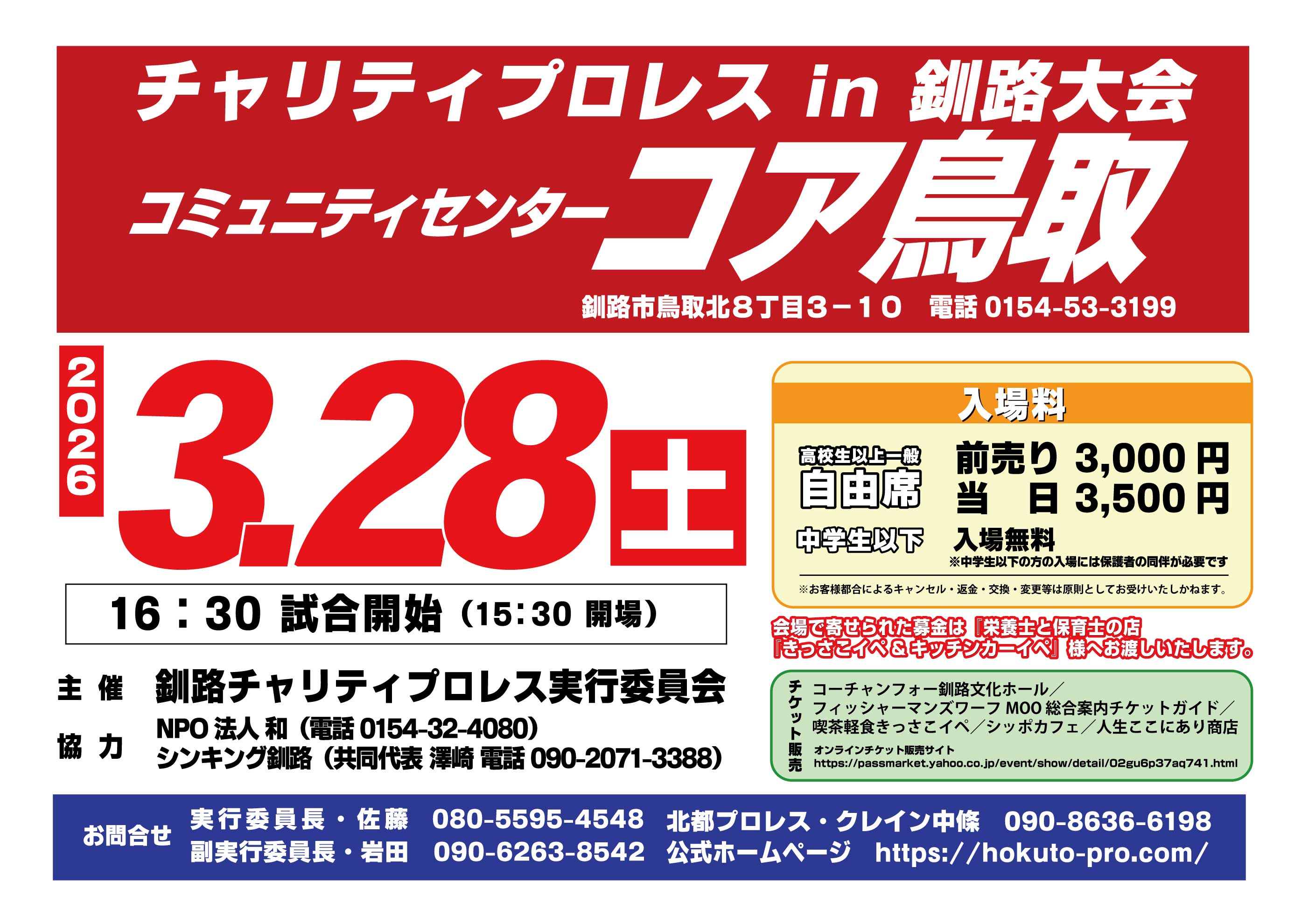 2026年3月28日(土) 【釧路市】チャリティプロレス in 釧路大会