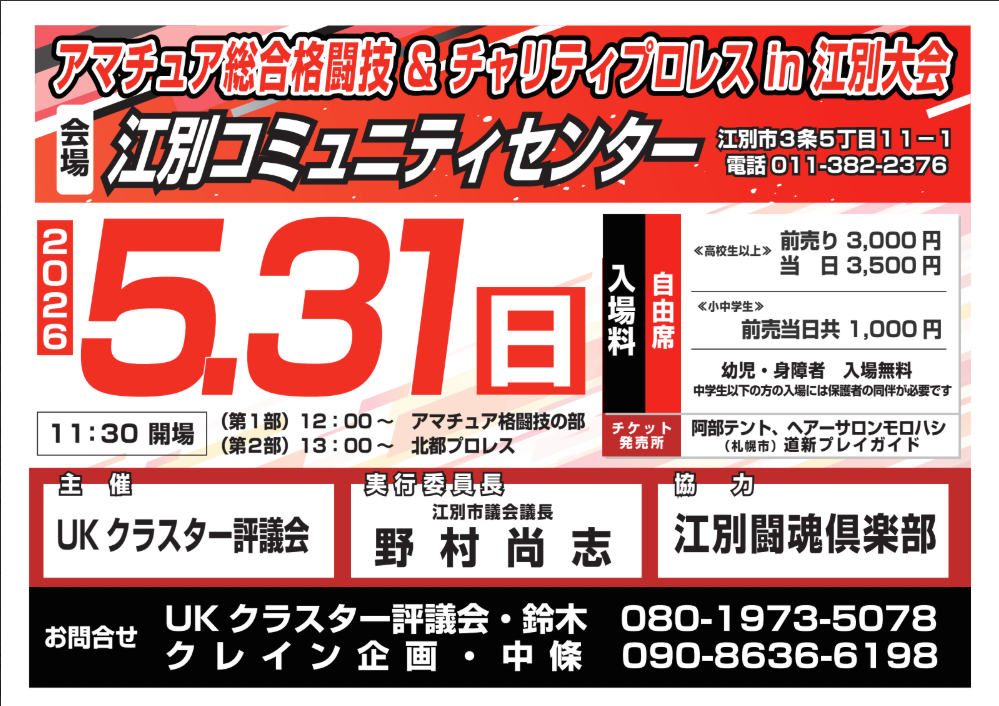 アマチュア総合格闘技 & チャリティプロレス in 江別大会 -2026.5.31(日)-